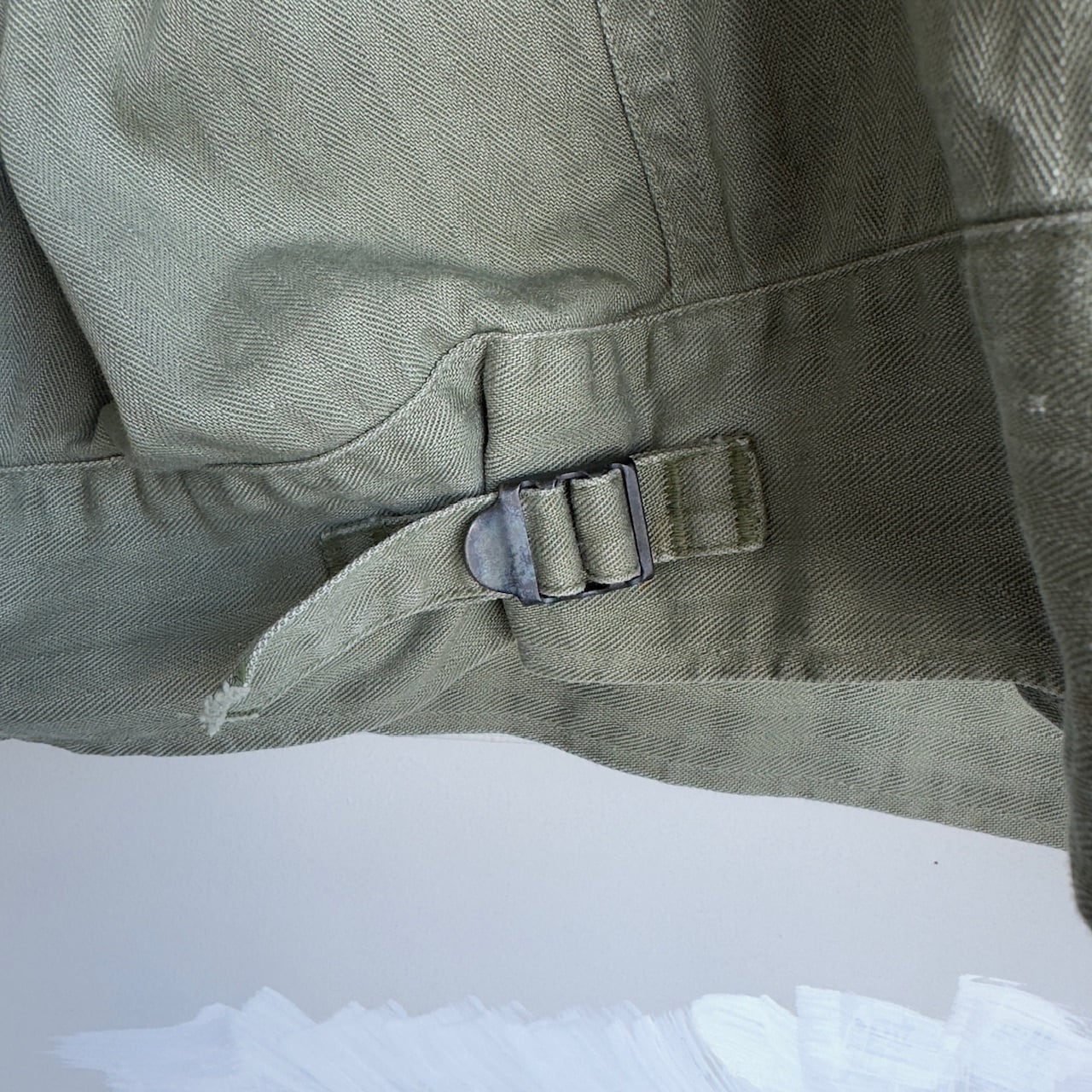 カジュアルシャツ、ドレスシャツに多いディティールですが、このM-41では、袖がその剣ボロ仕様となっています